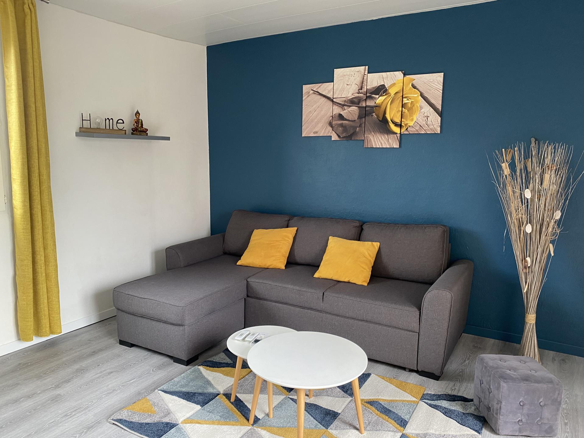 Gîte 4 personnes de 70 m2 donnant sur un patio extérieur avec coin barbecue, table de ping pong, trampoline.