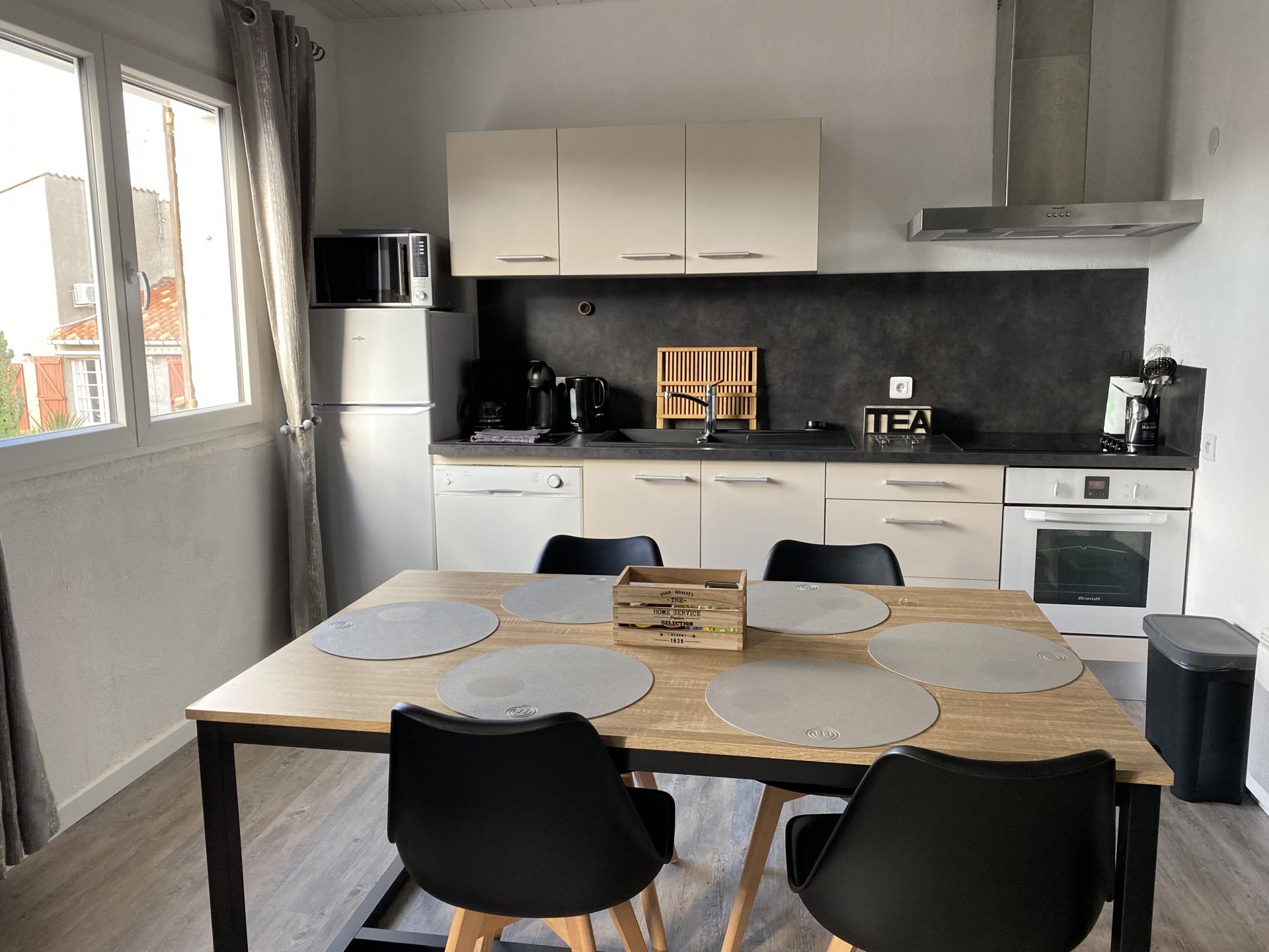 - Four, micro-onde, plaque cuisson, lave vaisselle, cafetière dolce gusto, réfrigérateur et compartiment congélateur, sèche cheveux, fer à repasser, écran plat,...